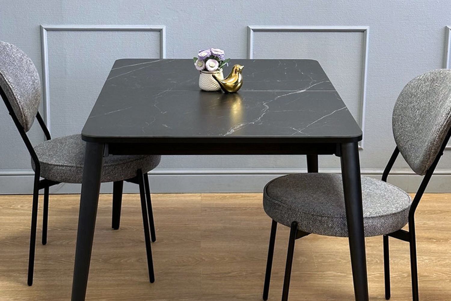 Купить Стол обеденный Стил раздвижной KS1200 черный/керамика мрамор черный в интернет-магазине мебели «Ангстрем»